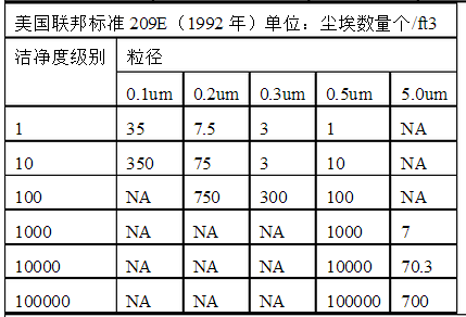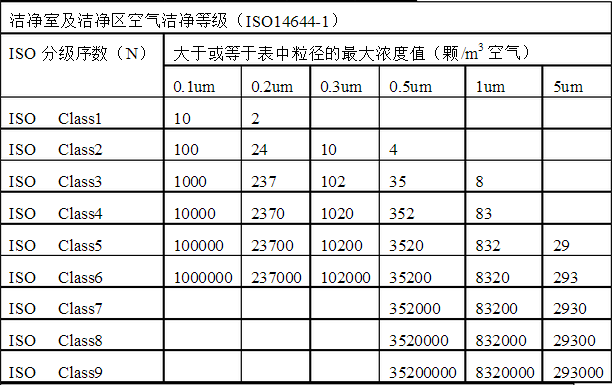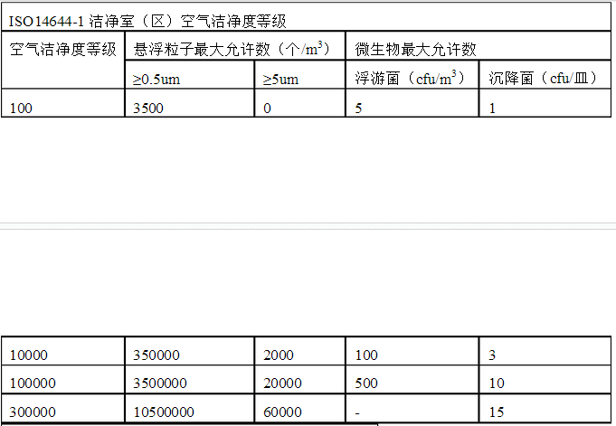 潔凈室檢測應參考的潔凈等級: 空氣潔凈度等級參考: