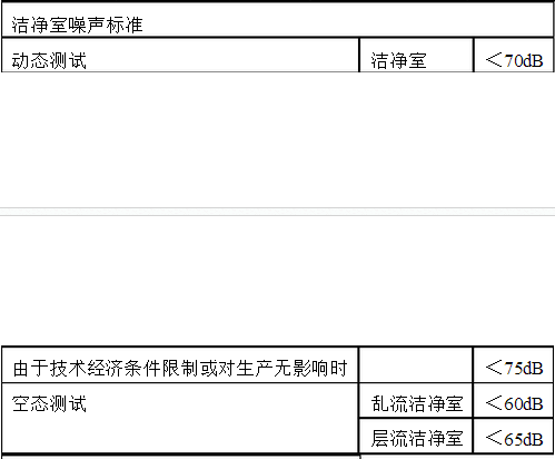 (6)非單向流潔凈室(區)的噪聲級(空態)不應大于60dB(A),單向流和混合流潔凈室(區)的噪聲級(空態)不應大于65dB(A)。